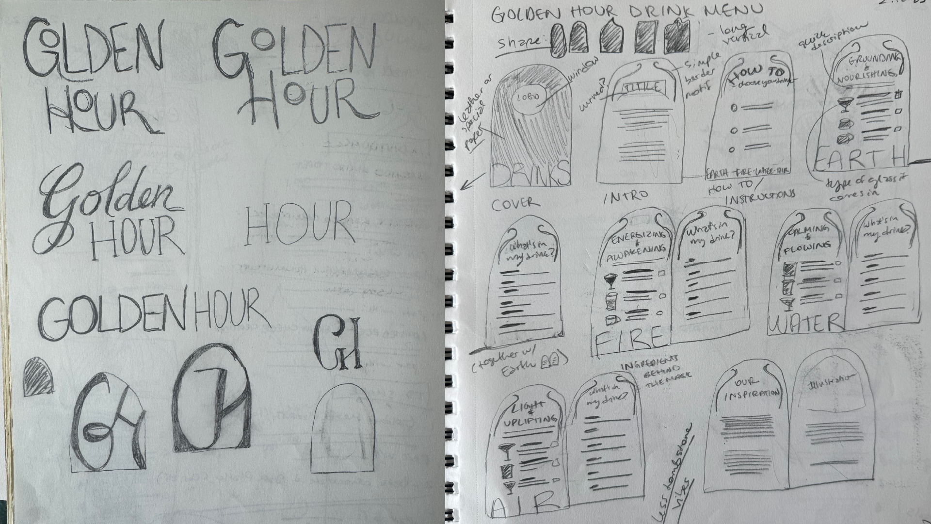 I began by researching the cultural history of drinking rituals and the emerging shift toward intentional, non-alcoholic social spaces. I analyzed how atmosphere, symbolism, and menu structure influence behavior, then explored Art Nouveau as a visual system for its fluidity, ornamentation, and immersive qualities. From there, I synthesized Eastern wellness philosophies into an energy-based menu framework that guided both naming and hierarchy.